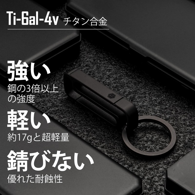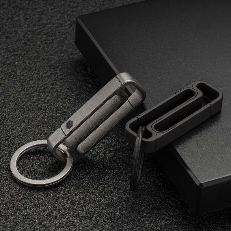 [KeyUnity] KM11 Titanium Key Chain Belt Clip Double Sided Carabiner for Men with Key Ring Medium Sandblasted Titanium Key, PVD Black