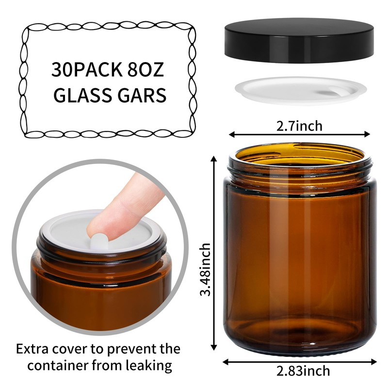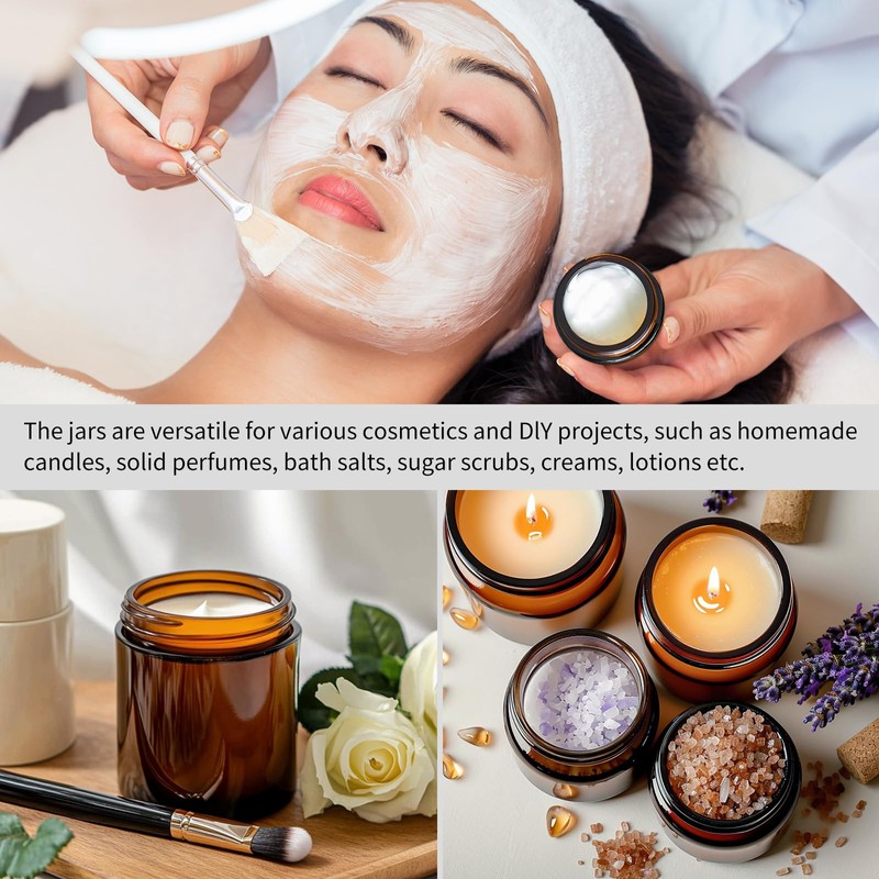 • Premium Quality: These 8oz amber glass cosmetic jars paired with black lids. Crafted from top-notch thick glass, each jar is built to last. The matching black lids feature inner liners for added convenience.