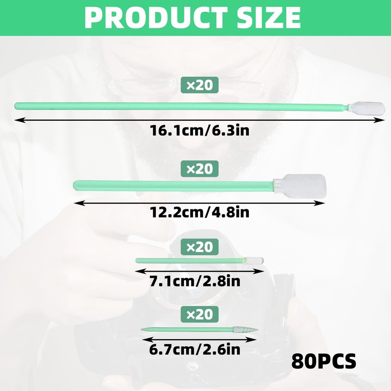 - Packaging and dimensions: the set contains a total of 80 cotton buds long in four different designs. It includes 20 sticks with a length of 163 mm, 20 sticks with a length of 122 mm, 20 sticks with a length of 70 mm and 20 sticks with a length of 65 mm. These different sizes and lengths allow you to conveniently select the appropriate cleaning sticks for different applications.