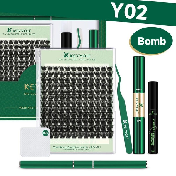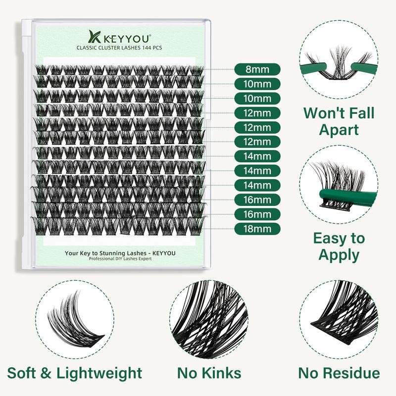 - KEYYOU DIY Cluster Lashes Kit Volume Waterproof Long-Lasting Lash Extension Kit D Curl 8-18MIX Eyelash Extensions Cosmetic Makeup