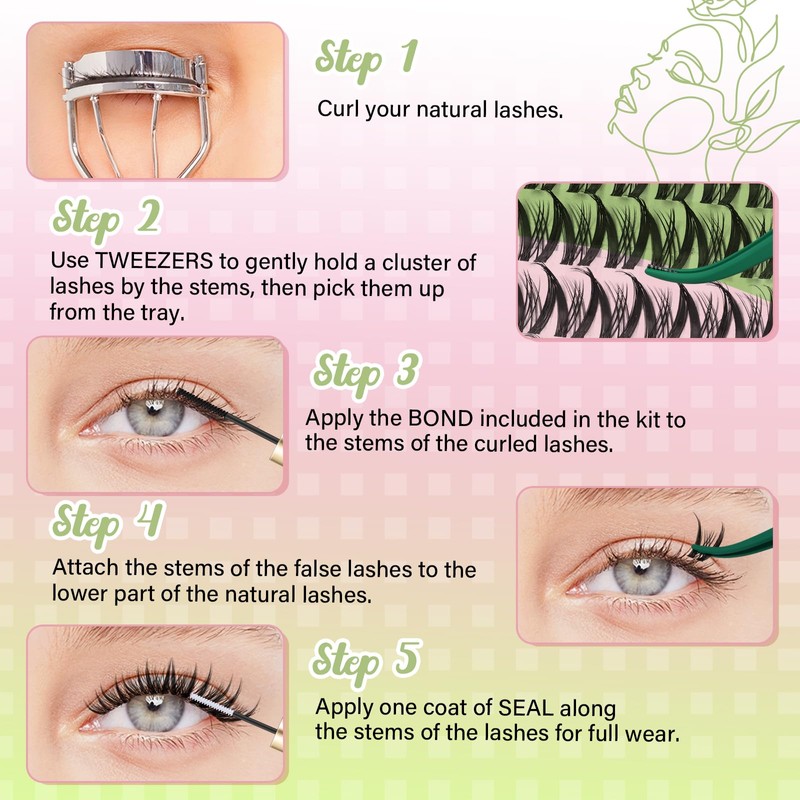 - EASY TO WEAR AND REMOVE: Use tweezers to clip the lashes in the set dipped in glue, wear at 1MM from the lash root, wear 3-4 clusters, then use seal for reinforcement, the lash glue and sealing effect can extend the wearing time up to 3-4 days