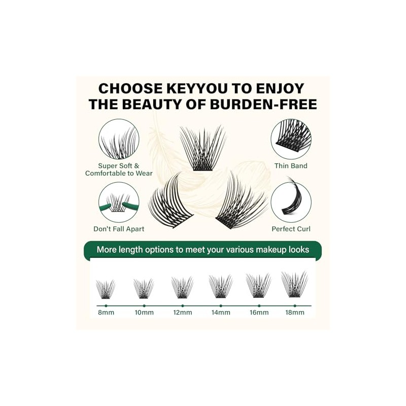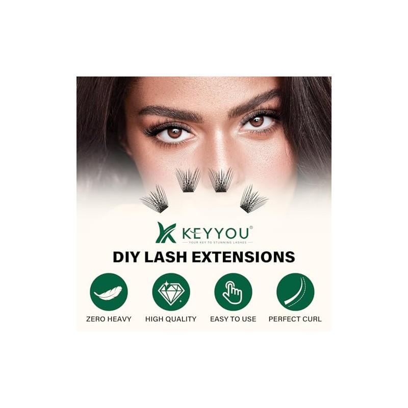 - HIGH QUALITYKEYYOU lash clusters also made of high-grade fiber material.They have no plastic feel and very natural to wear,don't harm the eyes.