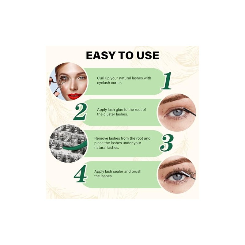 - ZERO HEAVYThe lash clusters made of ultra-ligheweight material,more softer than ordinary clusters lashes and comfortable and stress-free to wear.The eyelash clusters feel as light as feathers can be worn easily all day long.