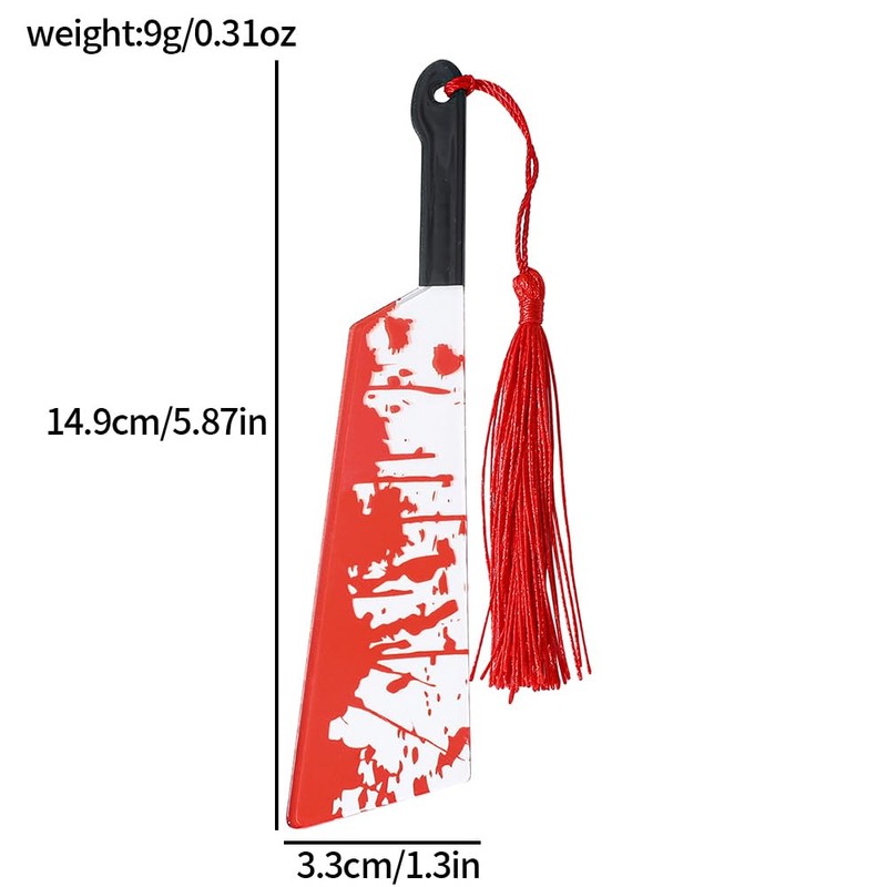 - UNIQUE DESIGN - These are six horror style creative bookmarks, stylized to simulate knives, kitchen knives, axes, saws and other tools. The main body is in black and white, the surface is covered with red blood patterns, and the black handle is decorated with red tassels. These bookmarks are a blend of thriller elements and practical functions, designed for people who love hunting and dark style, and can be used as reading markers as well as personalized decorations, highlighting the unique aesthetics.