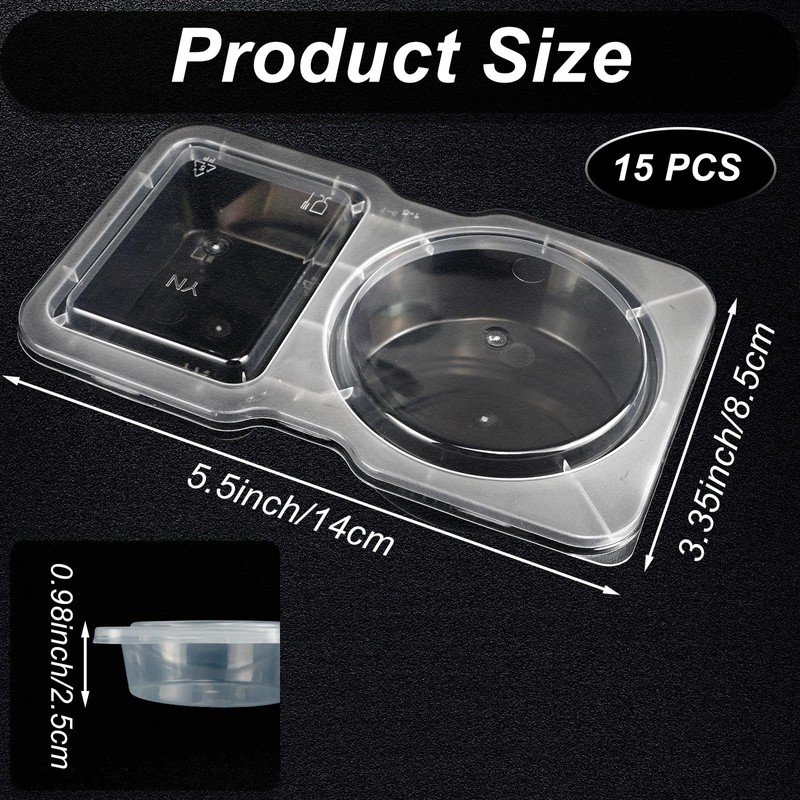 KFAREJGOAE Two Compartment Containers with Lids Little Snack Containers Divider Containers for Condiments Dressing 15 Count