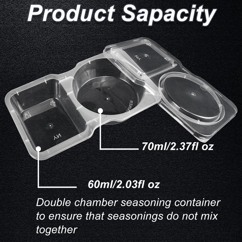 - 【2-Part Containers】Double compartment condiment container allowing you to store and carry different snacks