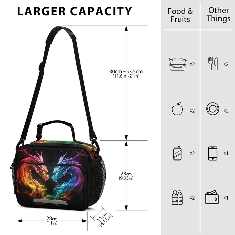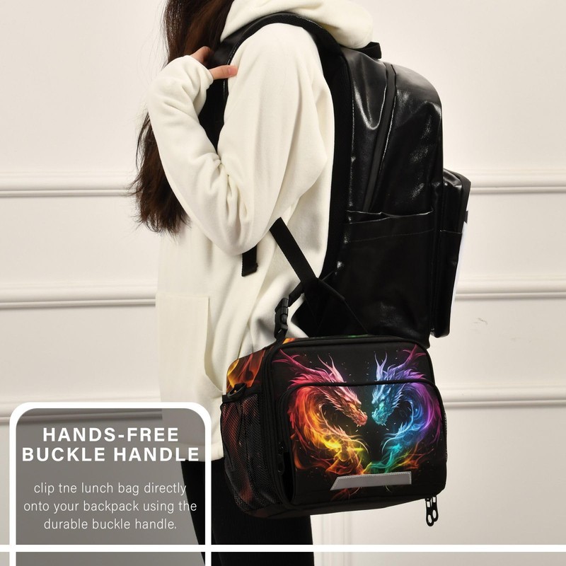 KFBE Color Flame Dragon Kids Lunch Box Insulated Lunch Bags Cooler Tote Bag with Removable Shoulder Strap for Boy Girl Student 20847458
