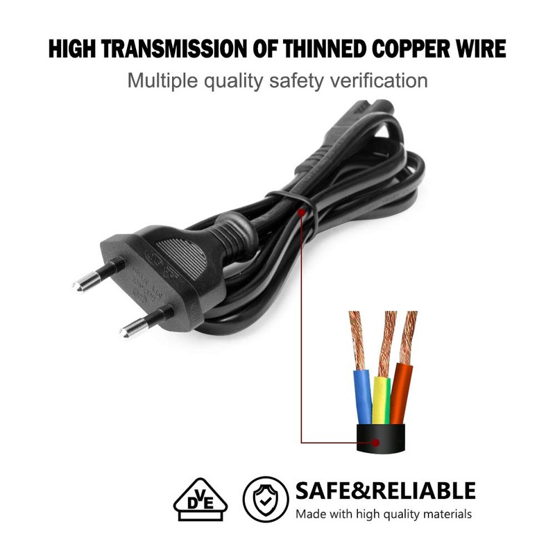 - With European power cable, please note: not all devices are compatible with it. Please pay attention to the output voltage, output current and plug size of your original power supply