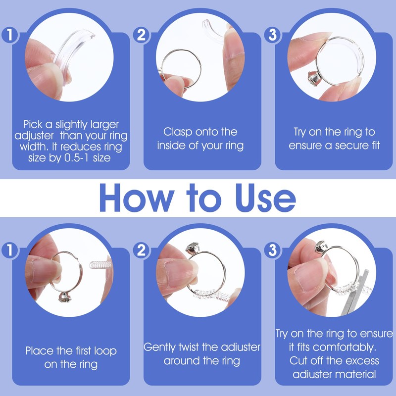 - Was Sie erhalten: Dieses Ringgrößenanpasser-Set enthält 8 Einsatzanpasser und 4 Spiralanpasser. Jeder unsichtbare Ringgrößenanpasser ist so konzipiert, dass er Ihnen hilft, die Passform Ihrer Ringe perfekt anzupassen. Mit diesen klaren Ringgrößenanpassern können Sie sicherstellen, dass Ihre Ringe immer gut sitzen und optimal aussehen.