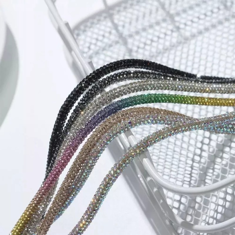 Diamantes de imitación brillantes: estas cuerdas redondas para zapatos se ven simples y elegantes, están adornadas con atractivos diamantes de imitación, que pueden brillar bajo la luz y reflejar un encantador brillo brillante; son bonitas decoraciones para tu ropa, y pueden añadir un toque delicado y animado a ti mismo