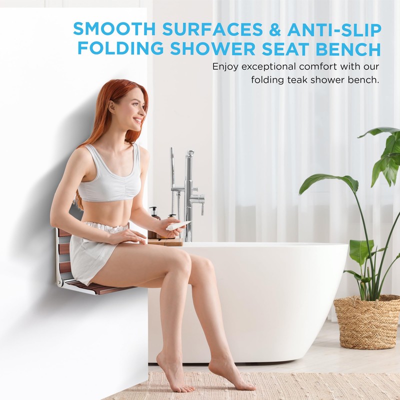 - Premium Waterproof & Durable Teak Wood - Made from natural, water-resistant teak wood that resists warping and cracking over time. This elegant material adds a spa-like feel to your shower while offering long-lasting support.