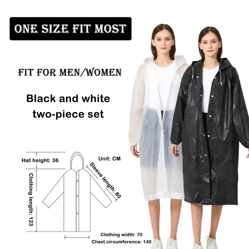 - One Size Fits Most: With a length of 115cm and chest width of 138cm, these ponchos are designed to fit most adults comfortably; The unisex design makes them suitable for both women and men in various outdoor scenarios