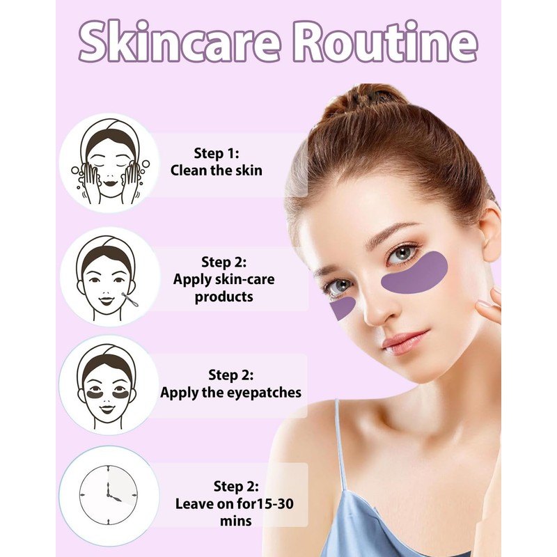KGDUYC 1 Pair of Reusable Purple Eye Patches, Eye Patches with Lifting Effect to Reduce Wrinkles and Fine Lines, Metal Applicator