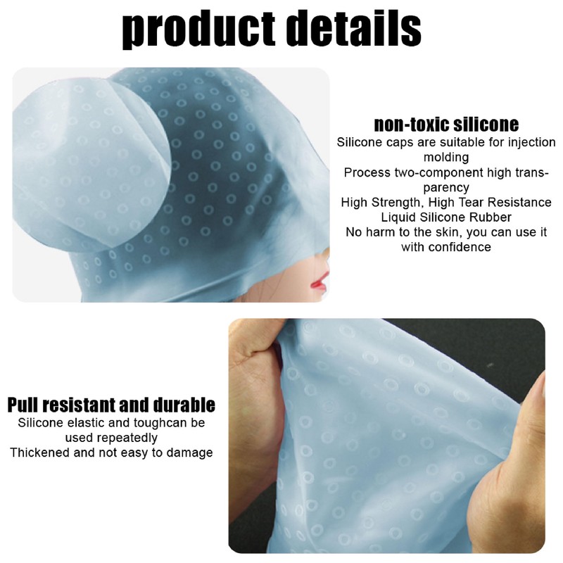 Easy to use: Put the silicone cap on your head, pass the hook through the hole as needed, hold your hair together with the metal hook, and you can start dyeing or braiding. (Note: There are no holes in the lid, if necessary drilling!)