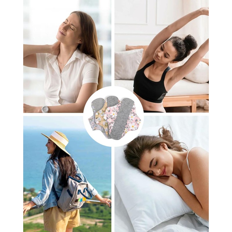 - Foldable design, easy to carry: washable sanitary pads are packed in the shape of a small envelope.