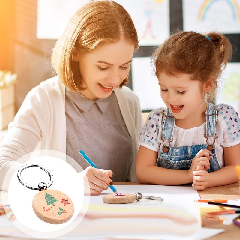- Lightweight and convenient: you will receive 40 blank key rings, wood for engraving with a diameter of 4 cm, a thickness of 7 mm and a total height of 7.5 cm, there are enough wooden key rings for engraving for your daily use. The wooden pendant is lightweight and comfortable to carry in your bag without taking up space, or hanging on your trouser or handbag, or on a wall hook when you do not need the wooden pendant for painting.