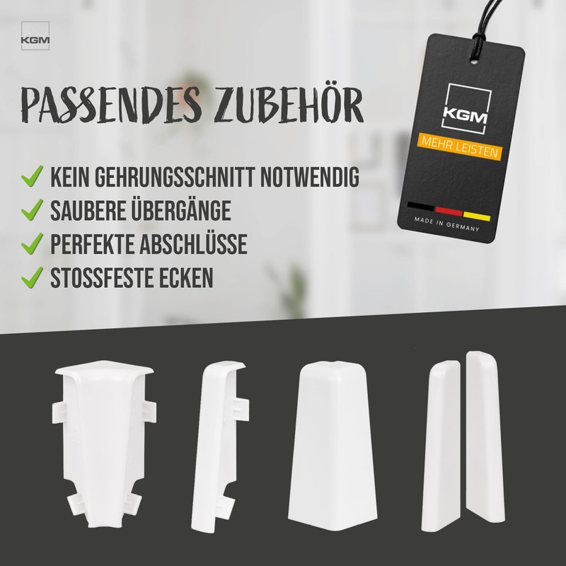 - Quality and material: our high-quality inner corners for skirting boards are made of robust plastic and offer a reliable and secure hold. Whether in the living room, office or kitchen, the room is enhanced by the outer corners
