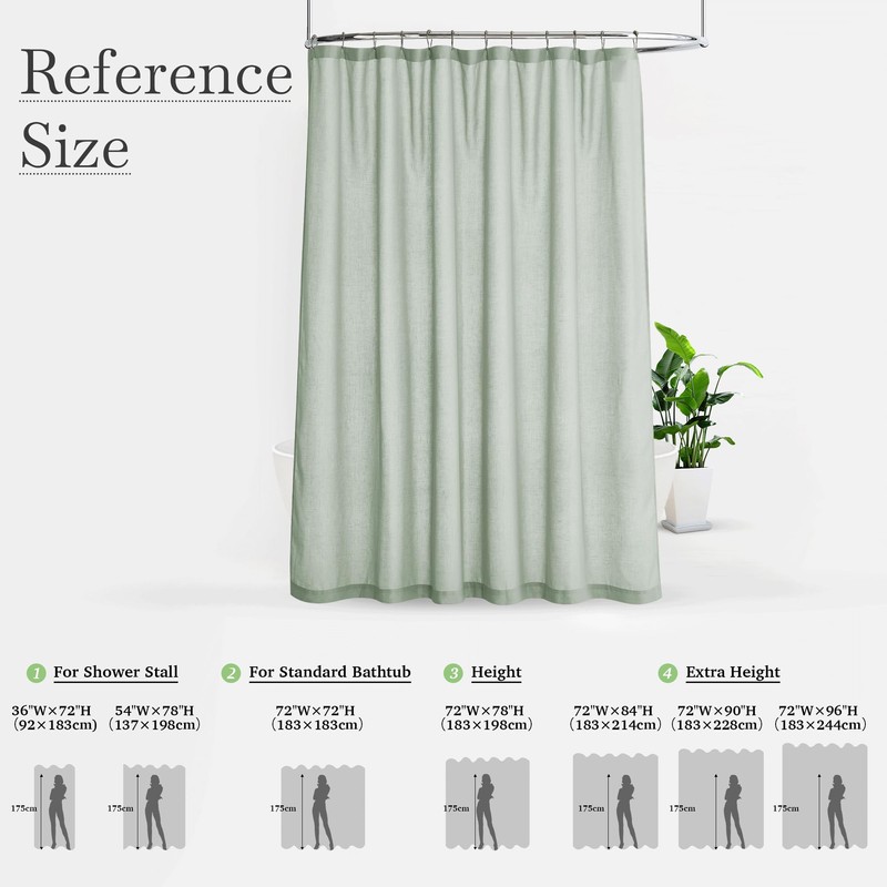 - PACKAGE INCLUDED- 1 panel of 72" x 72" linen shower curtains and 12 rustproof hooks for easy sliding. The standard size is sure to fit most bathtubs and shower stalls.