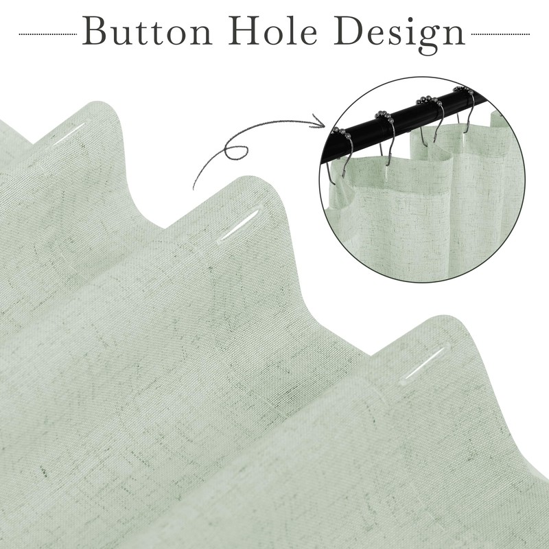 - FLAX LINEN BLEND - Weaved from thick linen blend fabric, the shower curtain looks natural and can accents your bathroom well. The curtain top adopts button hole design rather than grommet holes, keeping its natural aesthetics.