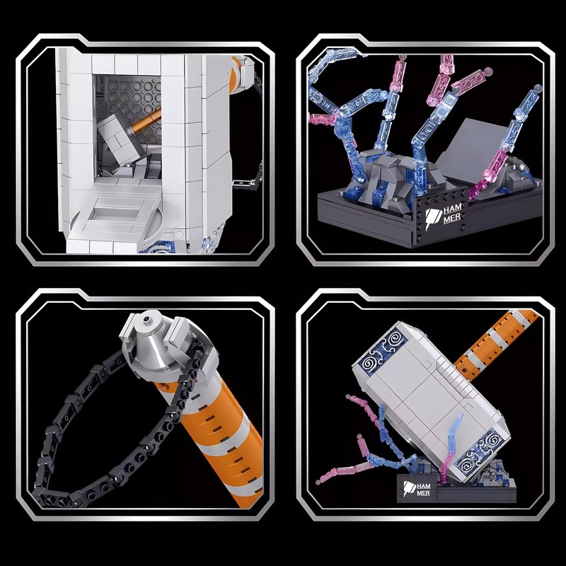 - Battle Hammer Construction Kit:Crafted from 975 precision-engineered pieces, this set brings to life a legendary weapon-inspired design with bold blue and red lightning accents, creating a striking centerpiece that blends mythical aesthetics with modern craftsmanship