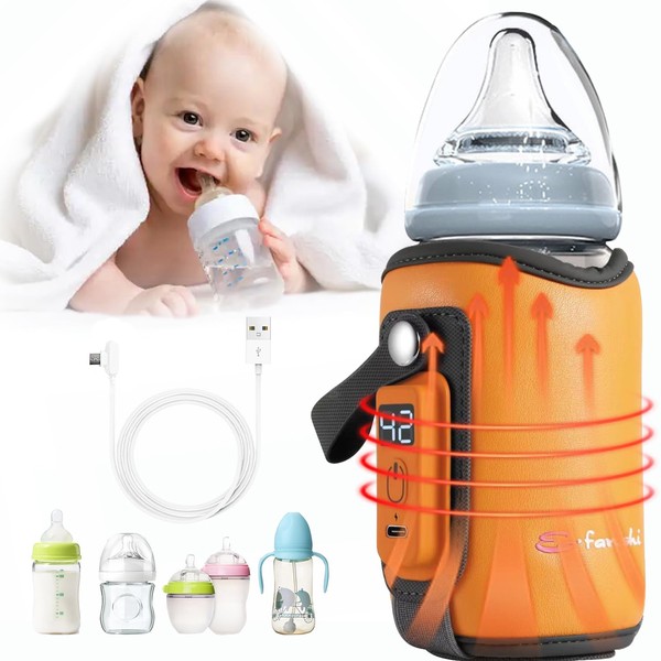 KGYMJR Baby Bottle Warmer, Portable Bottle Warmer Bag with USB Charge , Constant Temperature Bottle Warmer with Temperature Display,Five Gear Adjustable,Fast Heating for Night FeedingTravel Daily Use (orange)