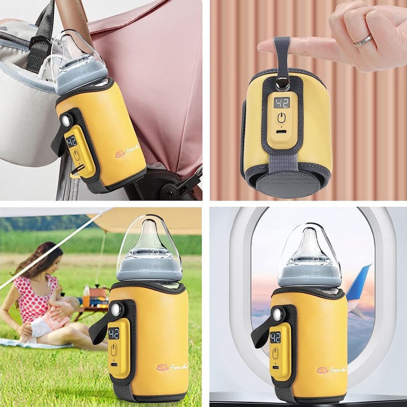 - ❤【Five-speed temperature adjustment】This portable baby bottle warmer is made of heat-resistant materials and is safely insulated. 38°, 40°, 42°, 46°, 50°, five-level temperature can be adjusted at will, effective heat preservation of nutritious milk. The baby bottle warmer can keep the temperature of the baby bottle and prevent it from getting cold, and the baby can drink milk while heating it.