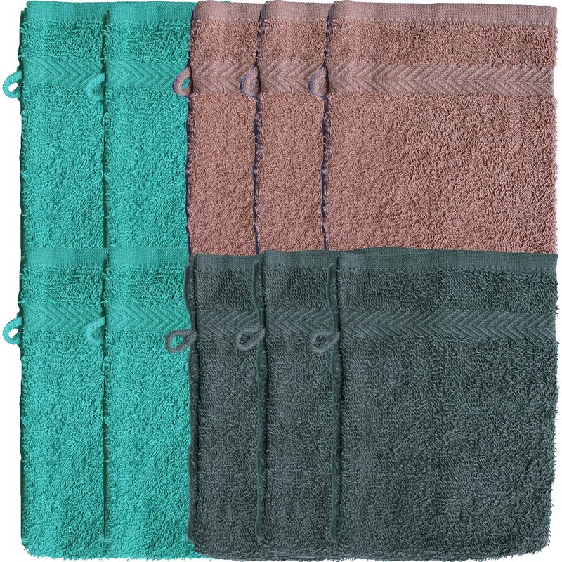 KH-Haushaltshandel Pack of 10 Plain Walk Terry Cloth Wash Mitts with Border Approx. 16 x 21 cm 100% Cotton Assorted