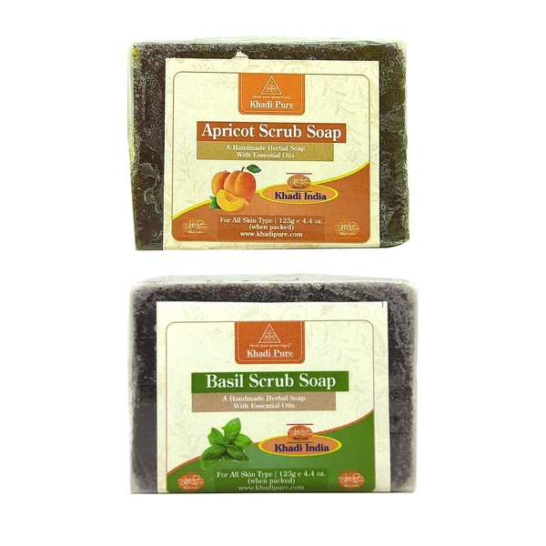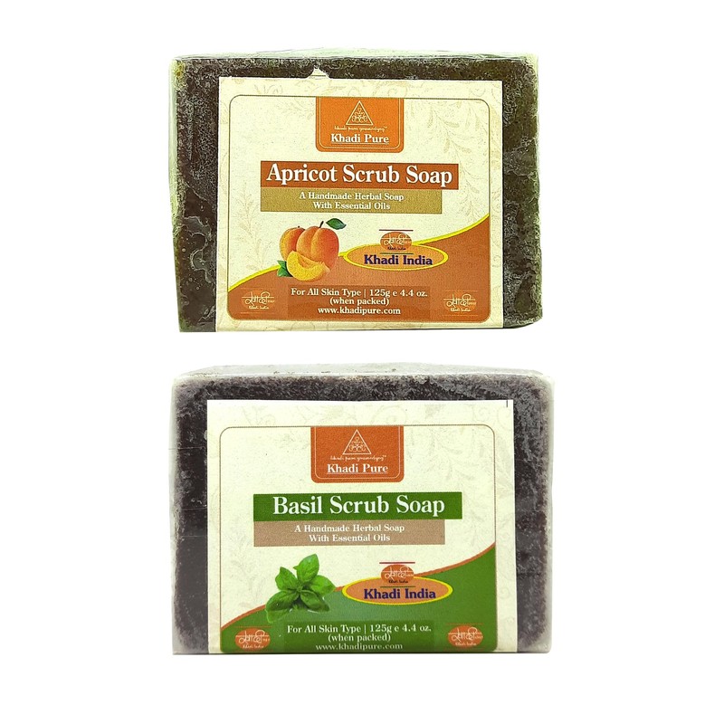 Khadi pure Herbal Apricot Scrub & Basil Scrub Soap (125g) Pack of 2 (250g)