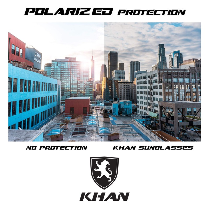 - 100% UV PROTECTION - Khan sunlgasses lenses come with both UVA & UVB protection, rated at UV400. Your eyes need protection from UV rays even on cloudy days, prevent long term damage with UV protection.