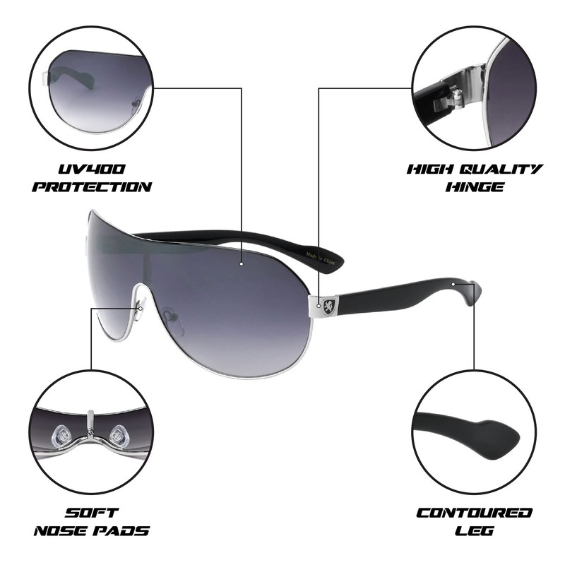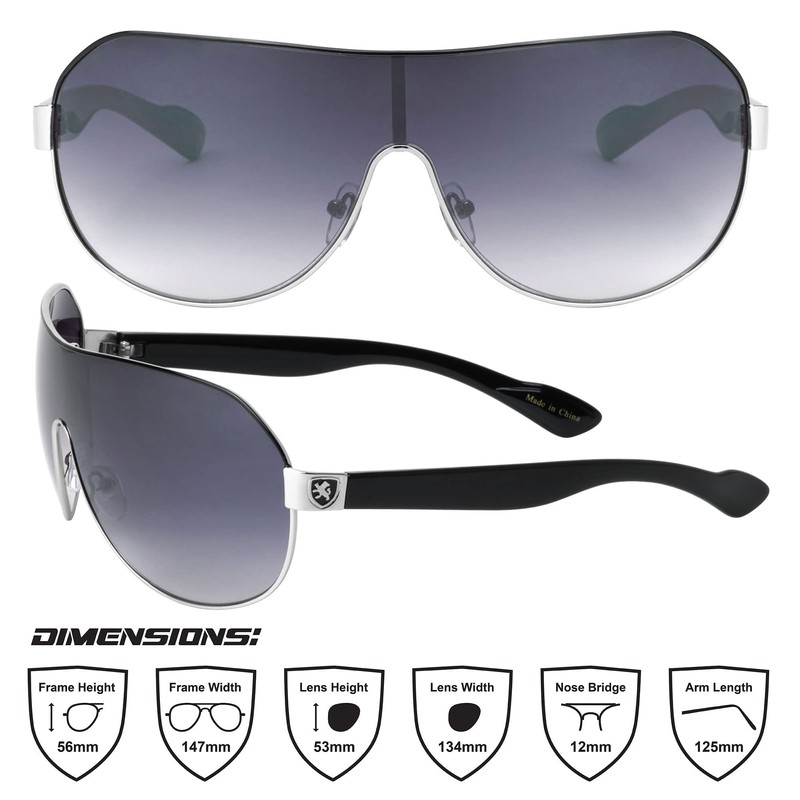 Khan Shuttle - One Piece Shield Sunglasses (Silver Black)