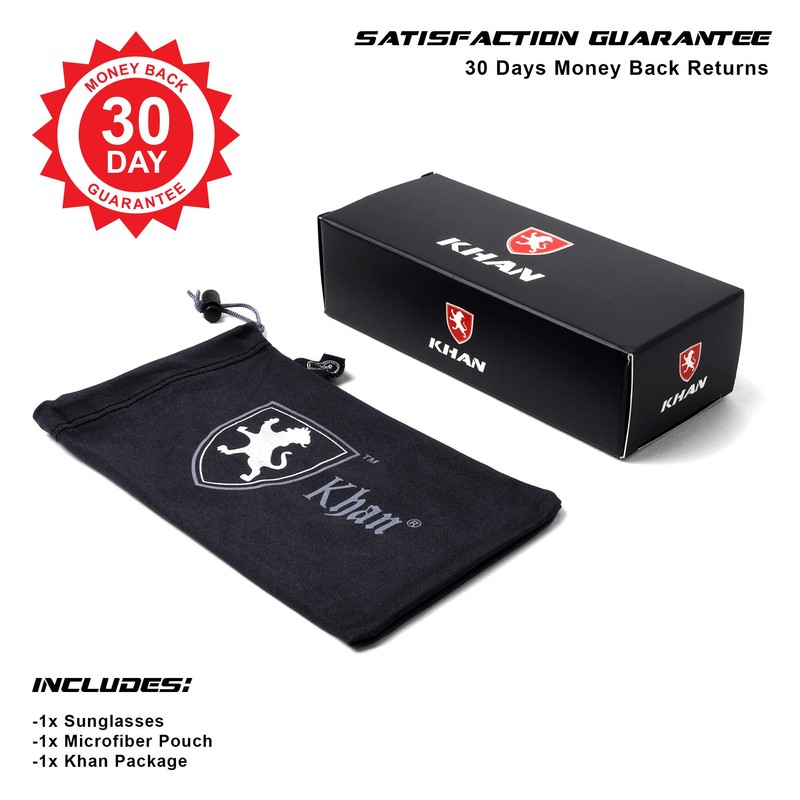 - 100% UV PROTECTION - Khan sunlgasses lenses come with both UVA & UVB protection, rated at UV400. Your eyes need protection from UV rays even on cloudy days, prevent long term damage with UV protection.
