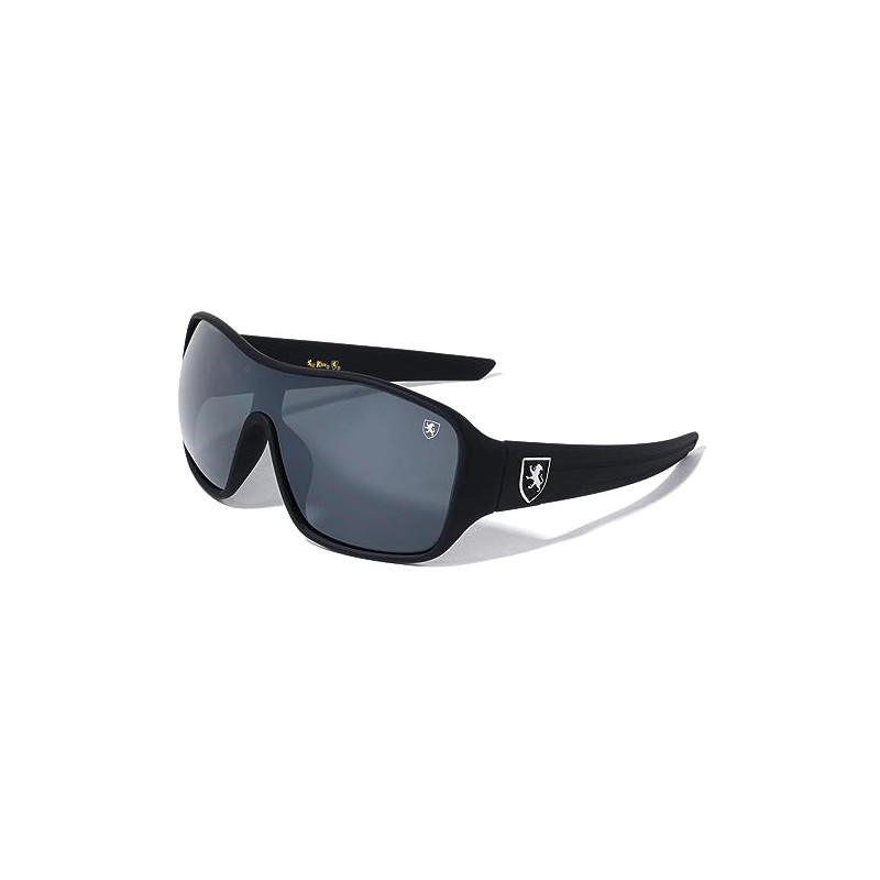 Khan Soft Rubber Oversized Shield Wrap Around Sunglasses (Black Frame, Black Super Dark)