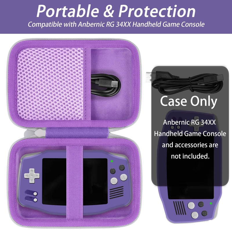 - [Multifunctional internal design]: A buckle and Velvet material designed specifically for the anbernic rg34xx handheld emulator avoid impact, and improve the lifespan of the RG34xx Retro game console. In addition, it comes with a mesh bag design that can store data cable accessories required for new anbernic RG34xx Retro.
