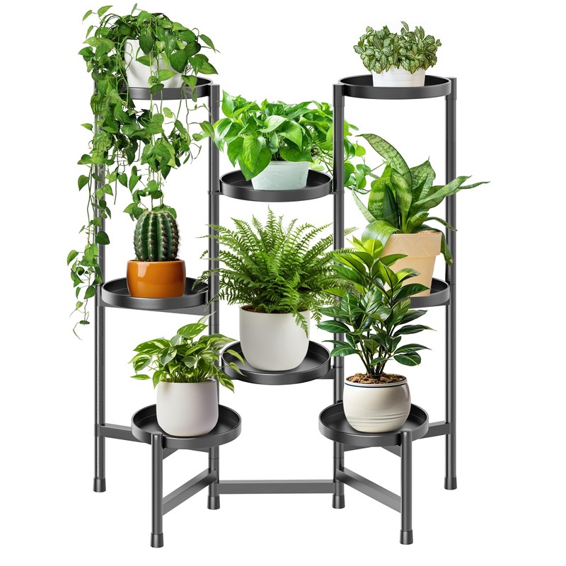 - 【Adjustable Foldable Flower Stand Indoor】 Our corner plant stand has 8 removable tray,The angle of the stand can be adjusted to your favorite angle according to your needs. With a stable structure and simple appearance, can be placed 8 flower pots while saving your space.