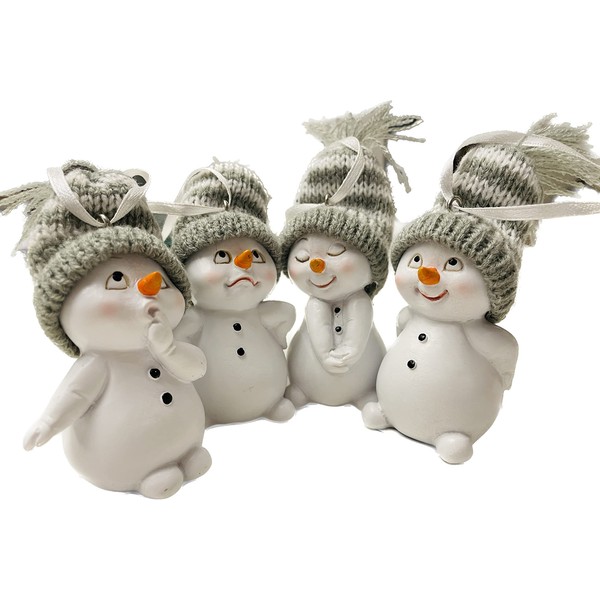 - Set of 4: you will receive 4 different snowmen in the set. All wear a cute headpiece made of textile.