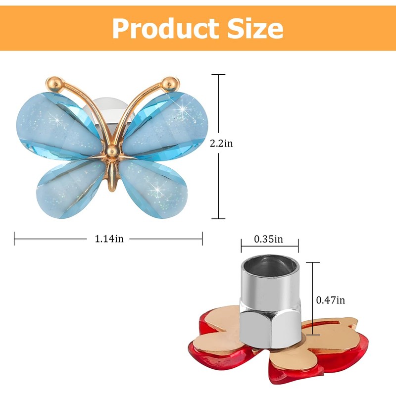 - High Quality Material: This car butterfly valve core creative butterfly valve cap is made of zinc alloy, plastic and rhinestones. The zinc alloy body is sturdy and wear-resistant, not easy to deform; the plastic parts are lightweight and tough, ensuring structural stability; the rhinestones are inlaid with them, glittering. The combination of the three ensures durability and demonstrates quality.