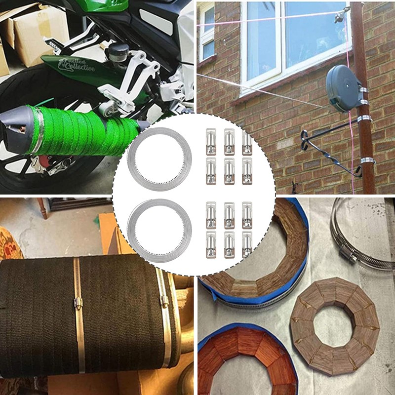 Enough fixings: Our clamp set consists of 6 m steel tape and 12 fixings. The width of the steel band is 12.7 mm (the manual measurement may have an error of 1-2 mm).