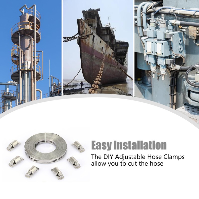 Stainless Steel Hose Clamps With the adjustable DIY hose clamps, you can cut the hose to the length you want, and then mount the bracket to get the size you want, no more wasted material and no need to store these hose clamps at home in unwanted sizes.