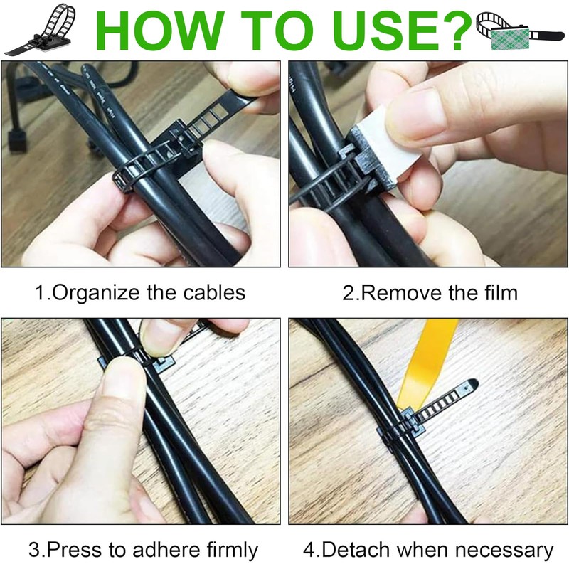 - 【Adjustable & Reusable】: Thanks to the clever zipper design, these cable ties are easily adjustable and reusable, even if the adhesive pad fails, you can fix them with a screw.
