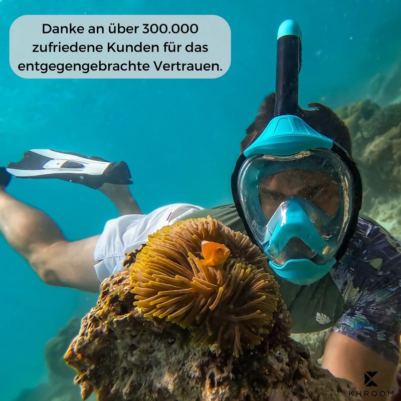 - Forget the old snorkel set (diving goggles with snorkel). Experience snorkelling and diving with a full snorkel mask and breathe through your mouth and nose as if on land.