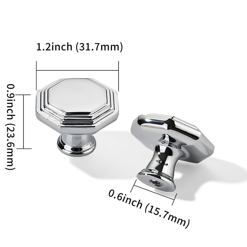 - Polished Chrome Cabinet Knobs:Diameter: 1-1/4 inch, projection: 1 inch, base diameter: 0.6 inches