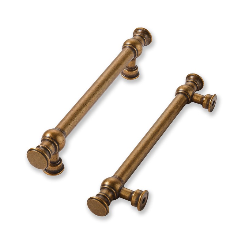 khtumeware 2 Pack 3-1/2inch(89mm) Hole Center Antique Brass Cabinet Pulls Solid Heavy Duty Pull Cabinet Hardware Handle for Kitchens cabinets Dressers Pull for Bathroom