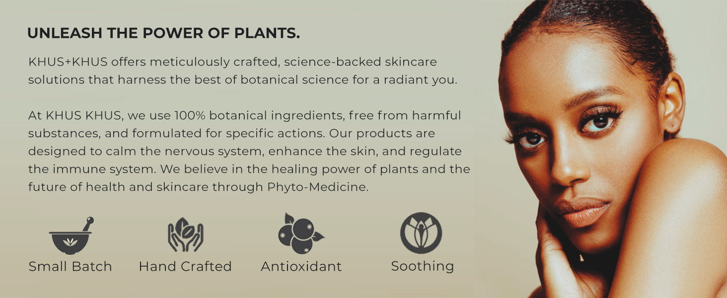 - OUR BOTANICALS - Our concept is simple, we believe strongly that plants support the body + mind in healing. They support us in our quest for healing and teach us to heal ourselves. One can say they are our teachers and healers, and the state of our wellness directly correlates with our connection to them. Your skin is the manifestation of what is going on internally in your body + mind. Choose to support health and balance with KHUS+KHUS.