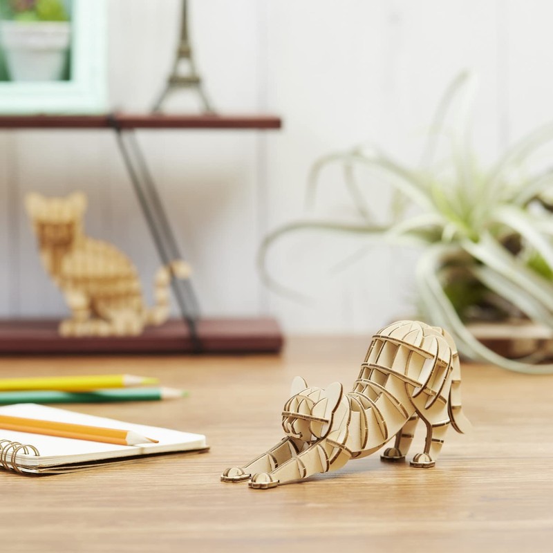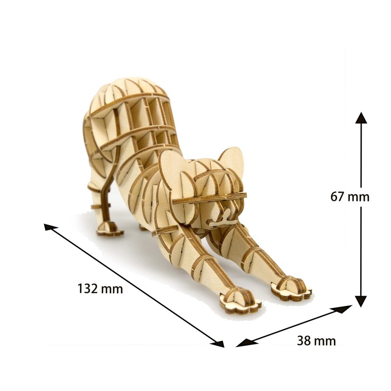 ki-gu-mi Cat (Cat / Stretch Pose) - Fun Wooden 3D Puzzle, DIY Craft Kit, For Boys And Girls, Educational Toy, For Adults And Elementary School Students