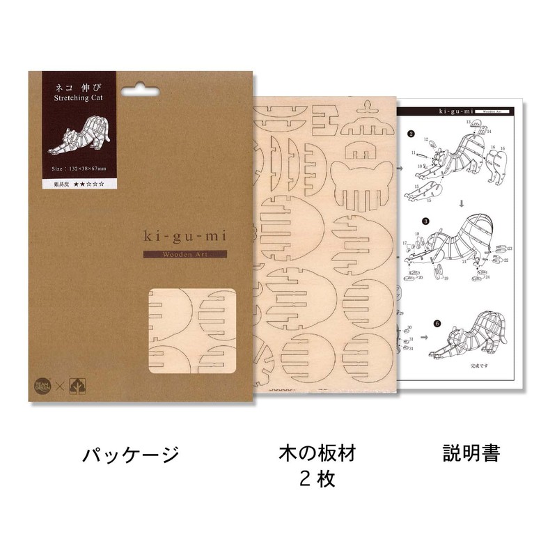 - (From the Wooden Sheet) The kigumi series is a wooden puzzle that can be assembled by cutting the puzzle pieces out of the sheet in the package. This is a handy assembly kit that does not require glue or tape