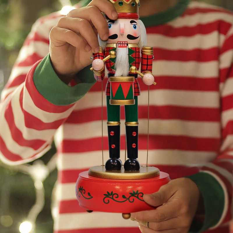 KI Store Christmas Nutcracker Red Music Box Wooden Drummer Soldier Nutcracker Figurine for Christmas Decorations Display Collection Gift