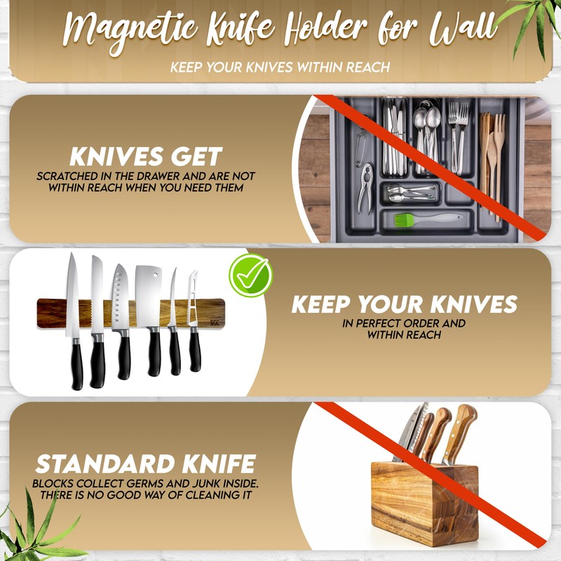 - **Strong Magnetic Grip:** Built with a powerful magnet that runs the entire length of the strip, it ensures that even the heavy knives hang safely and securely without slipping.