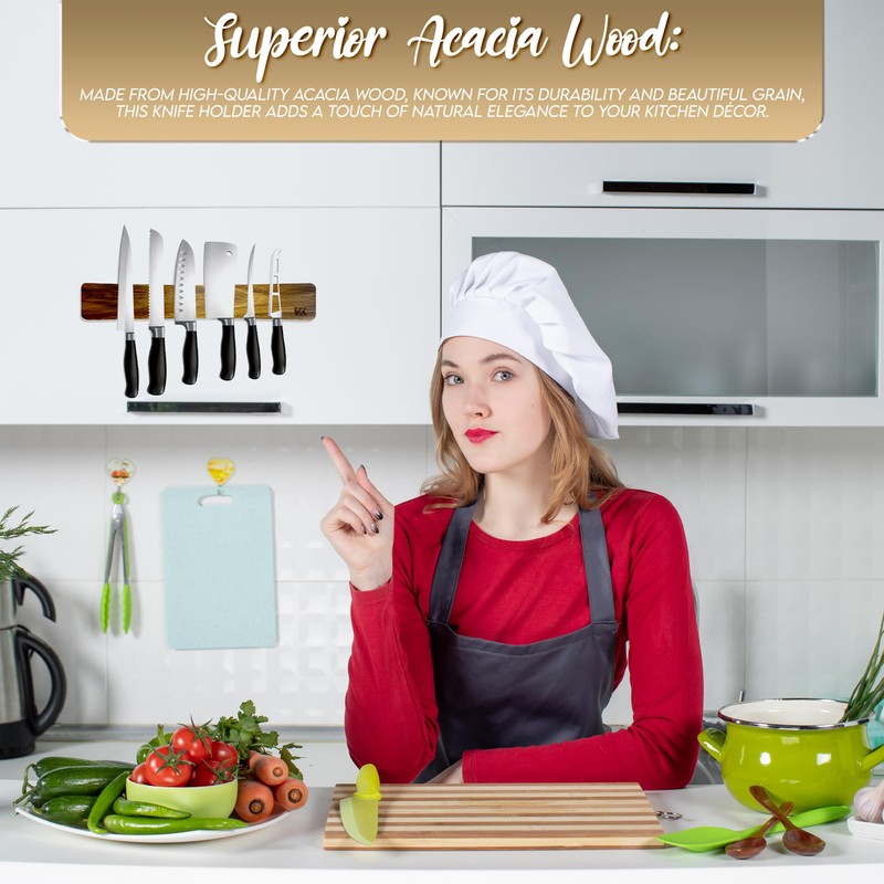 - **Superior Acacia Wood:** Made from high-quality acacia wood, known for its durability and beautiful grain, this knife holder adds a touch of natural elegance to your kitchen décor.