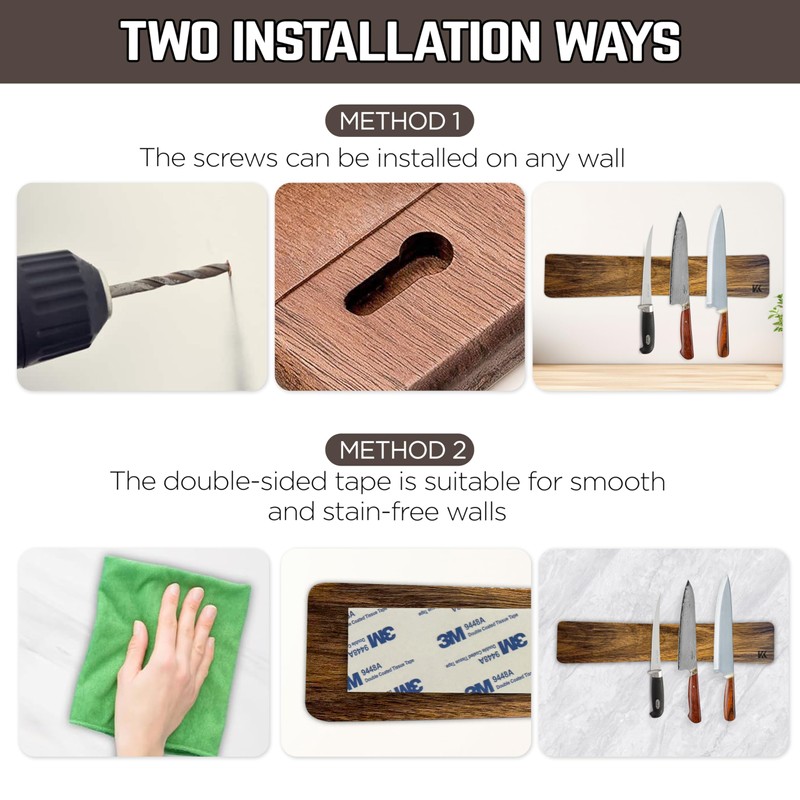- **Multi-Functional Use:** Beyond just knives, this magnetic rack can also hold other metallic tools and accessories, making it an excellent organizer for utility rooms, laundry areas, and garages.
