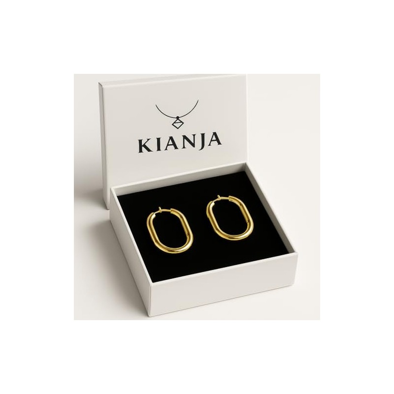 KIANJA Women's Earrings Stainless Steel Gold Plated - Oval Hoop Earrings 20mm - Gold Earrings - Elegant Minimalist Hoop Earrings